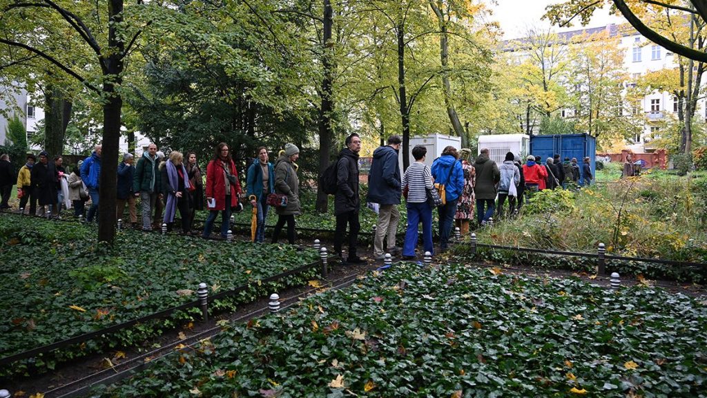 »La Memoria Futura« makes the material of the biographical family archive of the Abuelas de Plaza de Mayo accessible with a site-specific performance and subsequent sound installation. After the premiere in Buenos Aires at Parque de la Memoria, the multidisciplinary team from Argentina and Germany now brings the work to Ballhaus Ost and the neighboring Cemetery Park.