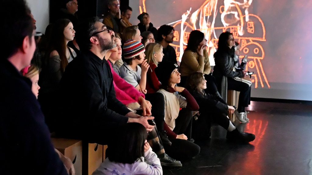 Between beats, projections, live soundscapes, and singing, a resonance chamber (“Resonanzkörper”) is created in which the climate does not appear as a distant threat, but as an immediate presence that inscribes itself in bodies, voices, and relationships.